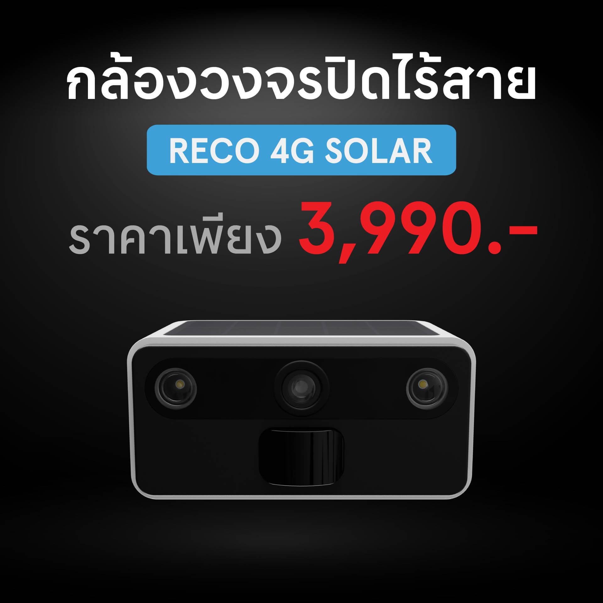 - ไม่มีไฟฟ้า ใข้งานผ่านซิมการ์ด ต้องการแบตที่ทนขึ้น พร้อมแผงโซลาร์เซลล์ในตัว → RECO 4G SOLAR