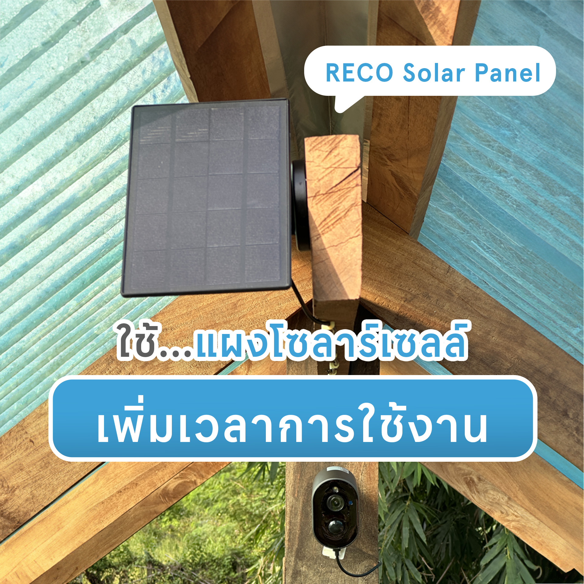 แผงโซลาร์เซลล์ใช้งานคู่กับกล้องวงจรปิดไร้สาย RECO เพื่อให้ประหยัดแบตอยู่ได้นานขึ้น