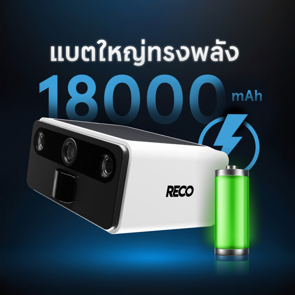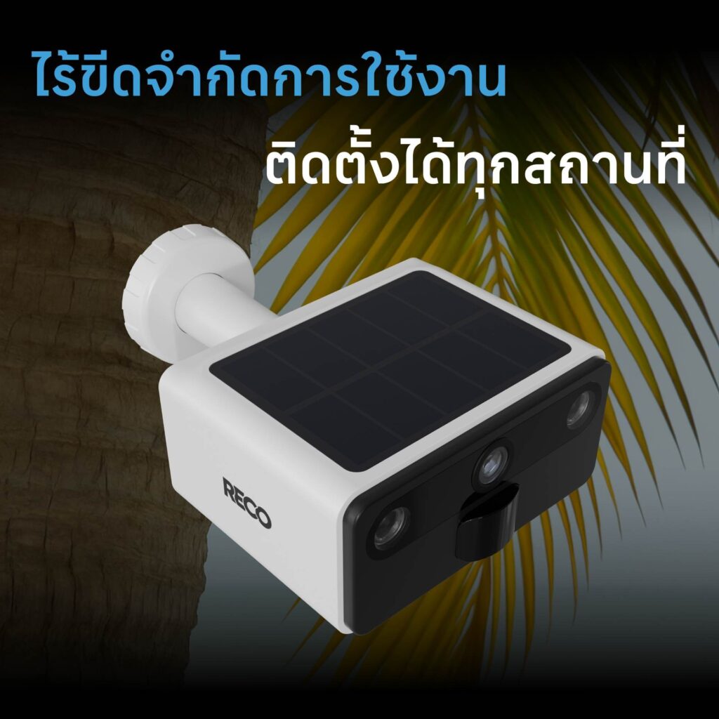 กล้องวงจรปิดไร้สาย RECO 4G SOLAR รุ่นใหม่ล่าสุด พร้อมโซลาร์เซลล์ในตัว เหมาะสำหรับติดตั้งกลางแจ้ง ใส่ซิมการ์ด 4G ดูภาพผ่านแอปพลิเคชัน RECO ได้จากทั่วทุกมุมโลก แบตอึด 18,000 mAh ภาพคมชัด 3 ล้านพิกเซล ระบบตรวจจับการเคลื่อนไหวแจ้งเตือนทันทีผ่านแอป RECO ภายใน 0.2 วินาที